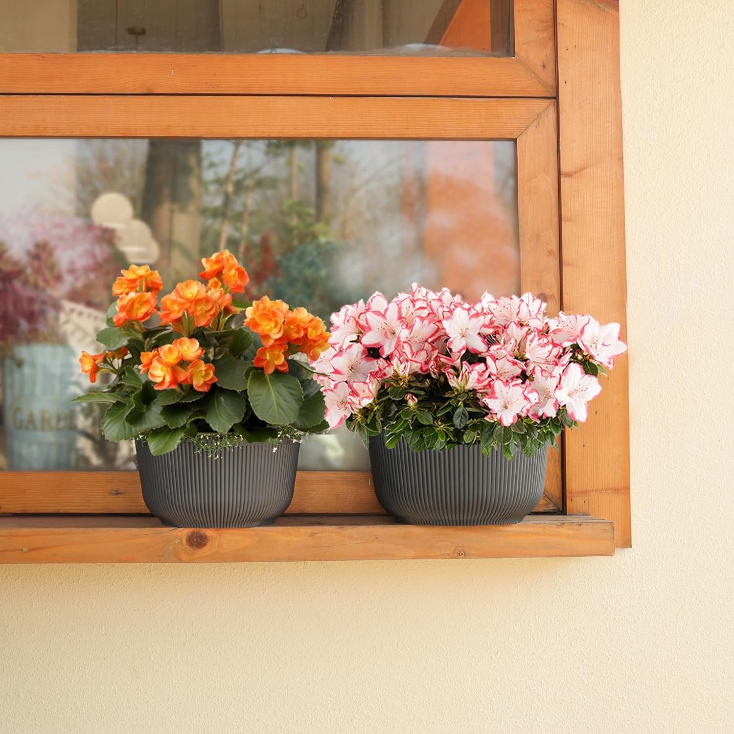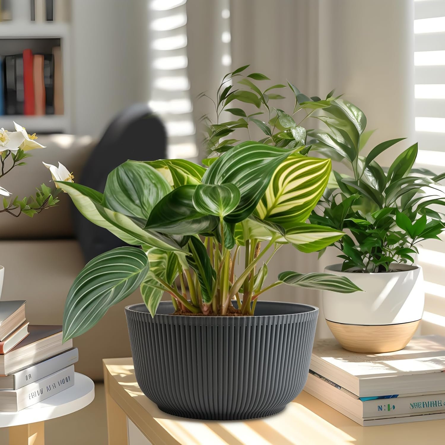 - Elegant and Practical Design : Enhance your garden, living room or office with the our self watering pots for indoor plants & outdoor plants. The detachable saucer, planters for indoor plants and outdoor plants, and drainage plug eliminate installation concerns. This design, makes home decor flower pot a perfect gift for gardening enthusiasts.